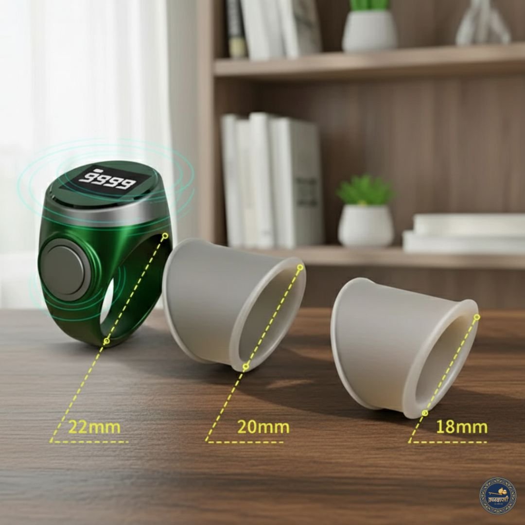 Designed as a finger ring counter, it fits comfortably and stays secure during long chanting sessions. The waterproof body makes it reliable for daily use, whether at home, temple, or while traveling. Its rechargeable smart system ensures long-lasting performance without the hassle of frequent battery replacement.